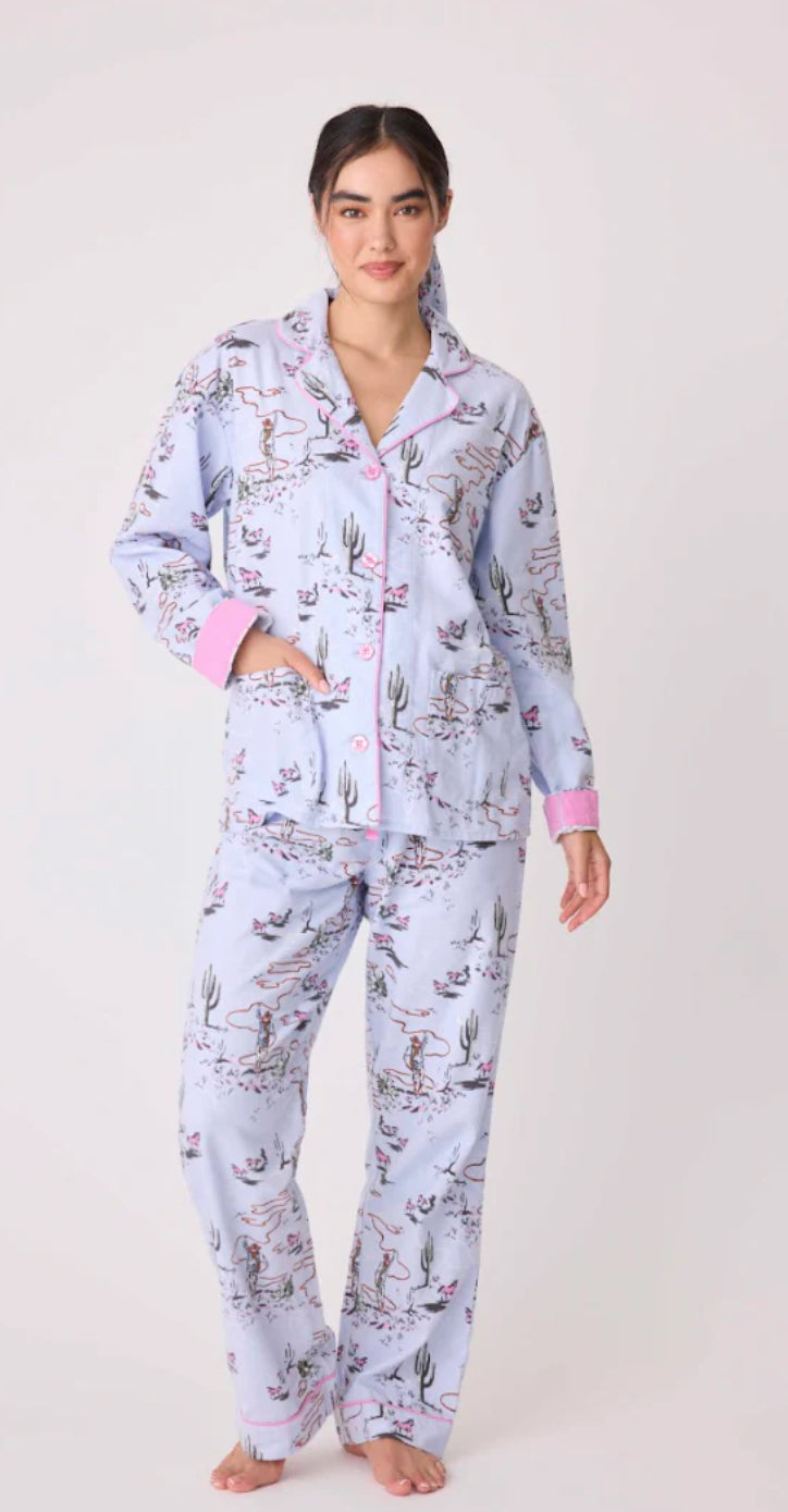 PJ SALVAGE-WILD HEART WESTERN FLANNEL PJ SET-BLUE WHISPER