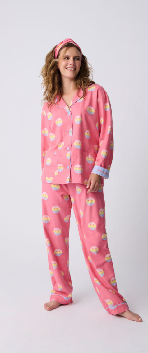 PJ SALVAGE-KEEP ON SMILING FLANNEL PJ SET-HOT PINK