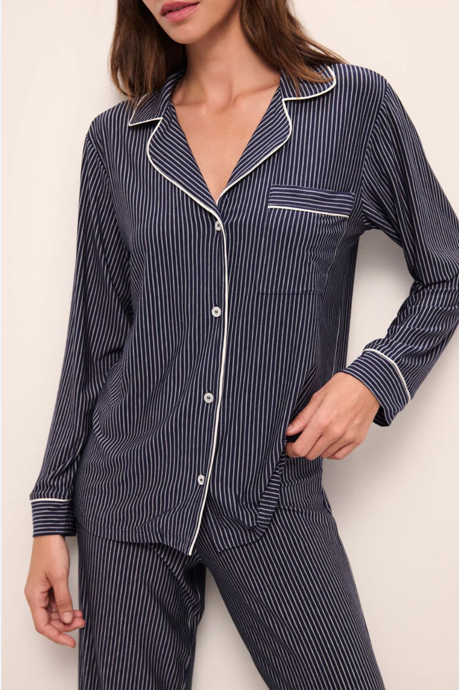 EBERJEY-GISELE LONG PJ SET-NAVY STRIPES