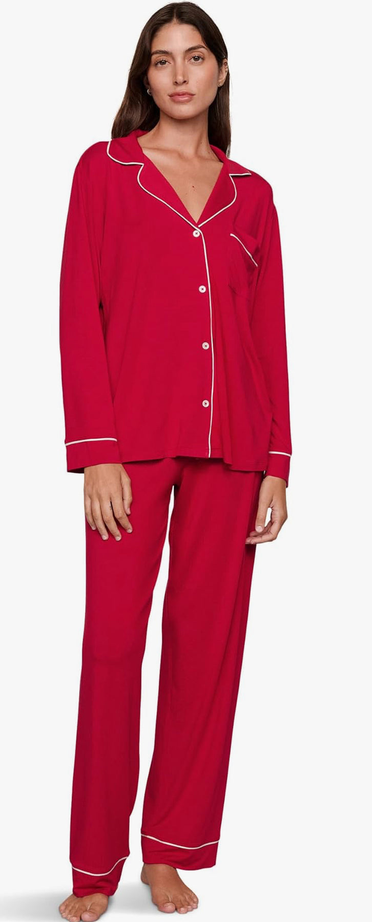 Our luxurious, temperature-regulating knit fabric drapes and falls in all the right ways, enveloping the body in comfort. Plus, it’s machine washable, and gentle on skin, so it not only feels beautiful but it’s easy to care for, too. These are the cozy, relaxed PJ’s you’ll live in, gift to everyone, and pack with you wherever you go.
